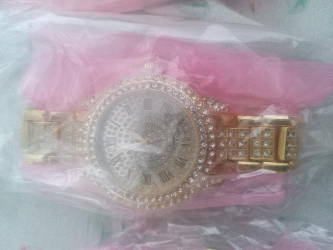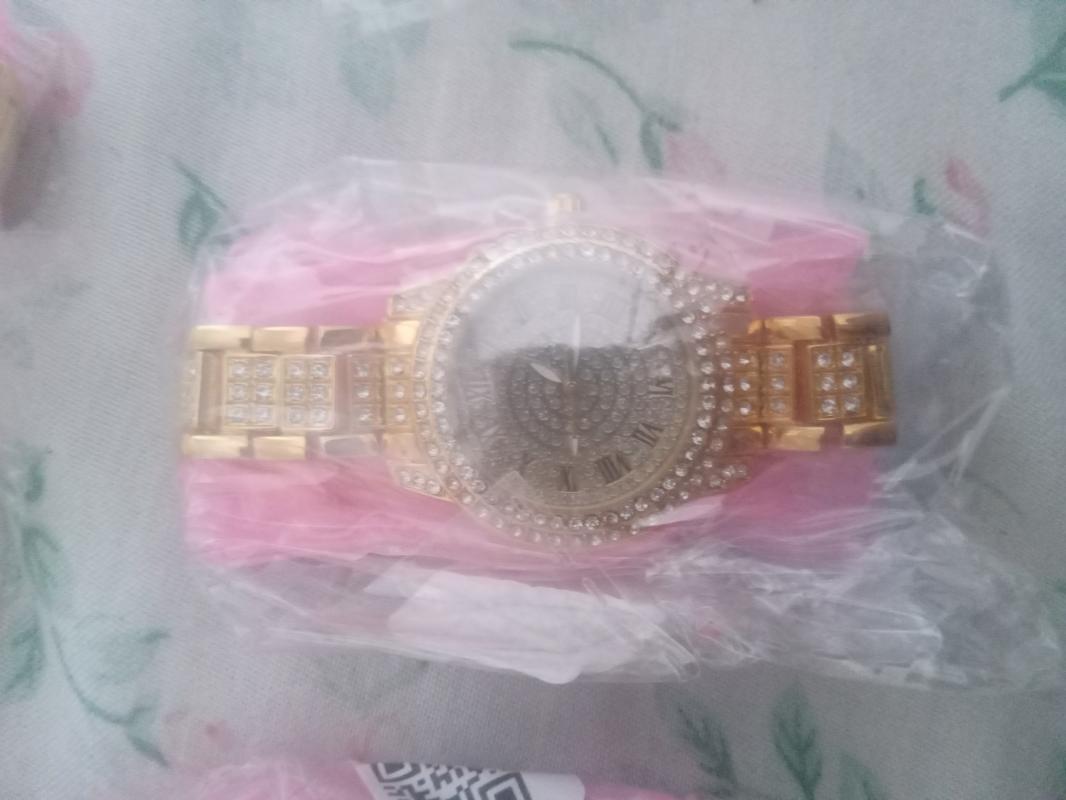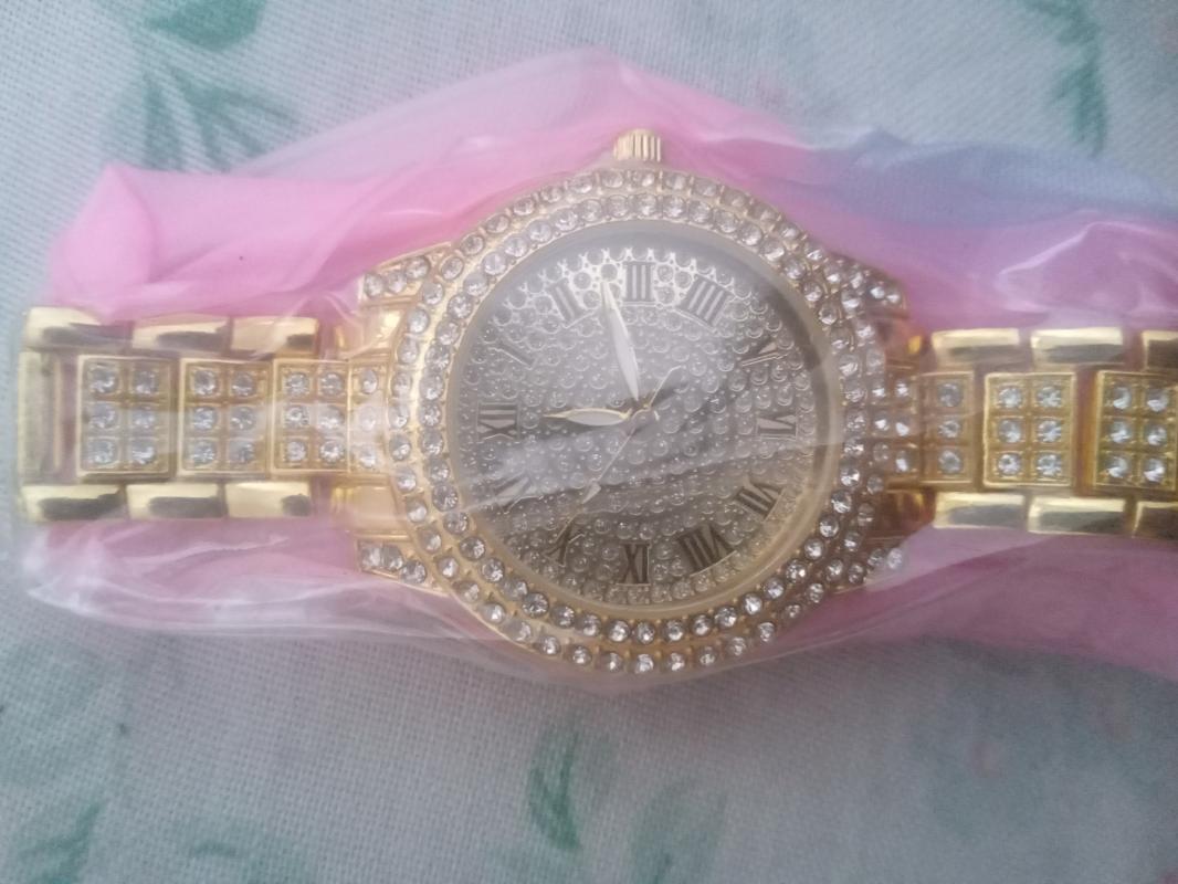 שעון משובץ אבנים צבע זהב וכסף לאשה