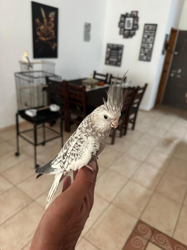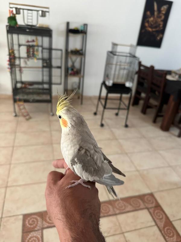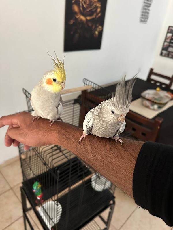 זוג קוקוטיילים בני 7 חודשים חמודים וחברותיים , האכלת יד כולל כלוב אוכל וכל הציוד הנדרש