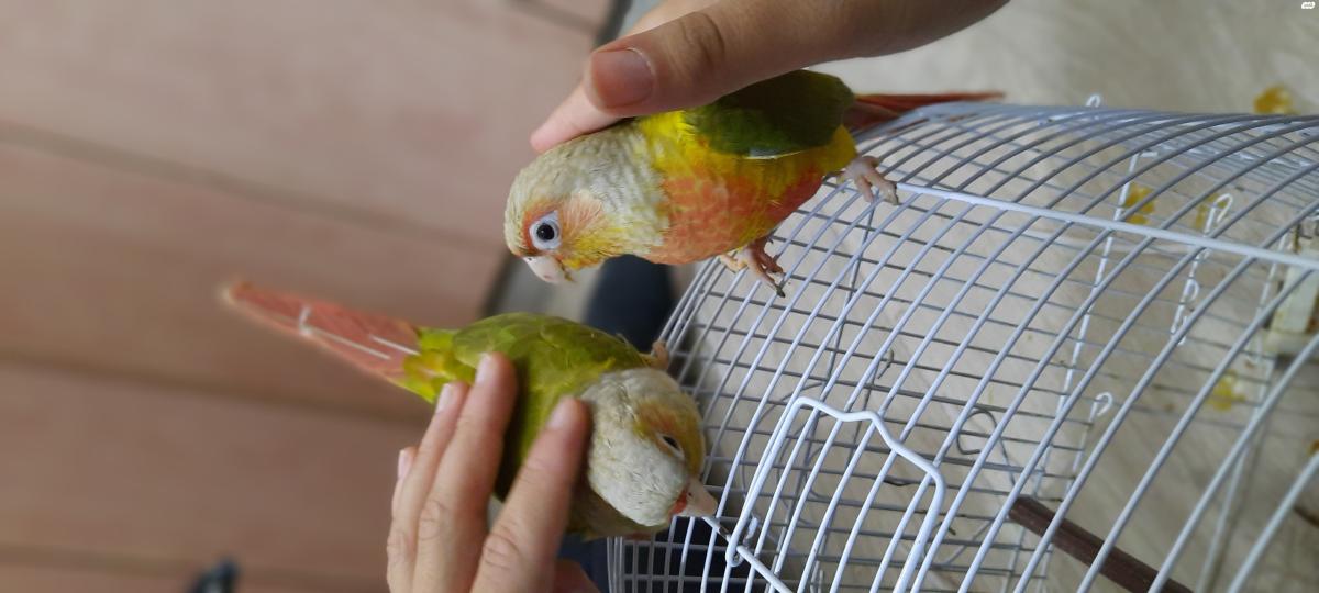 זוג תוכים קטנים שמאוד אוהבים אחד את השני תוכי האכלת יד בני שלושה חודשים מאוד יפיפים ופעילים