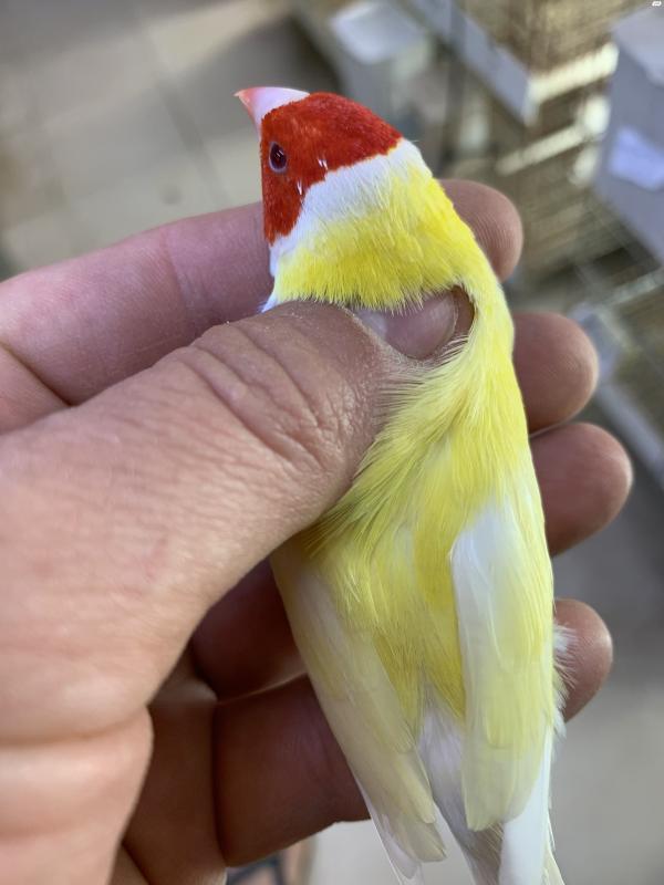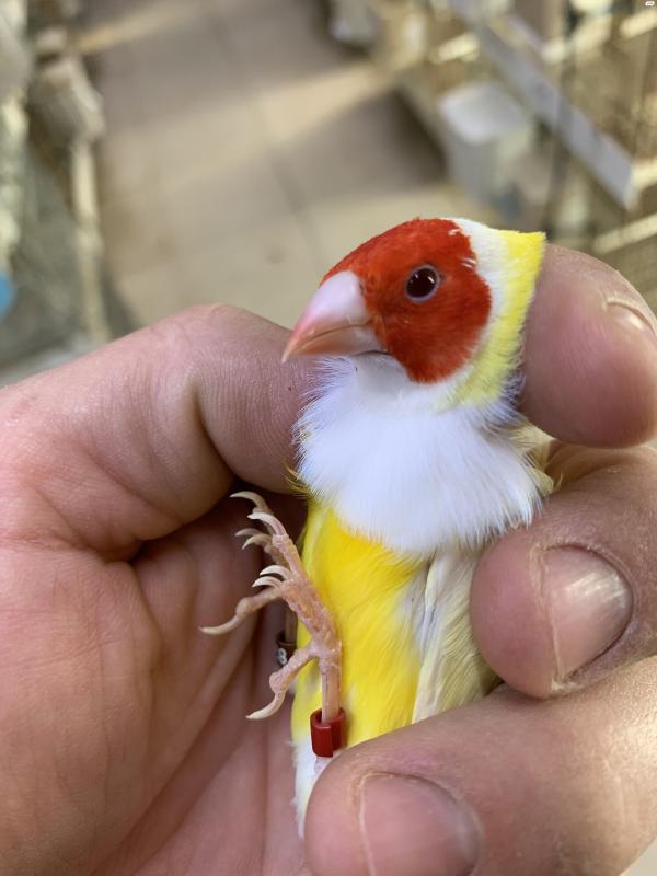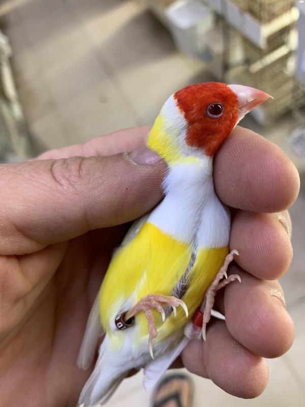למכירה זוג גולדנים לוטינו זכר ראש אדום ונקבה ראש לבן /אפור