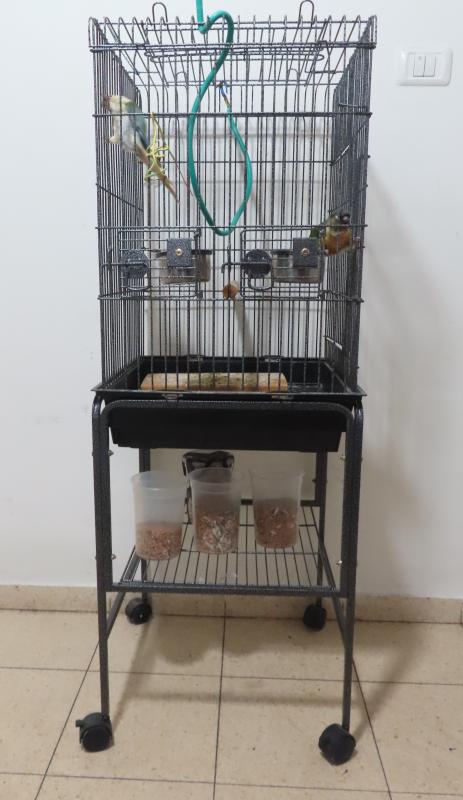 למכירה שני תוכים מסוג גרינציק חמודים יפים בגיל חמשה חודשים עם כלוב גבוה וגדול על גלגלים כולל 5 קילו אוכל