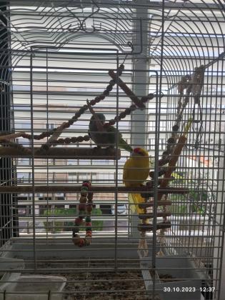 למכירה שתי תוכים האכלת יד הצהוב מסוג קאקאריץ תוכי נדיר מאוד בהאכלת יד.הירוק מסוג קוואקר גם האכלת יד כולל הכלוב .
