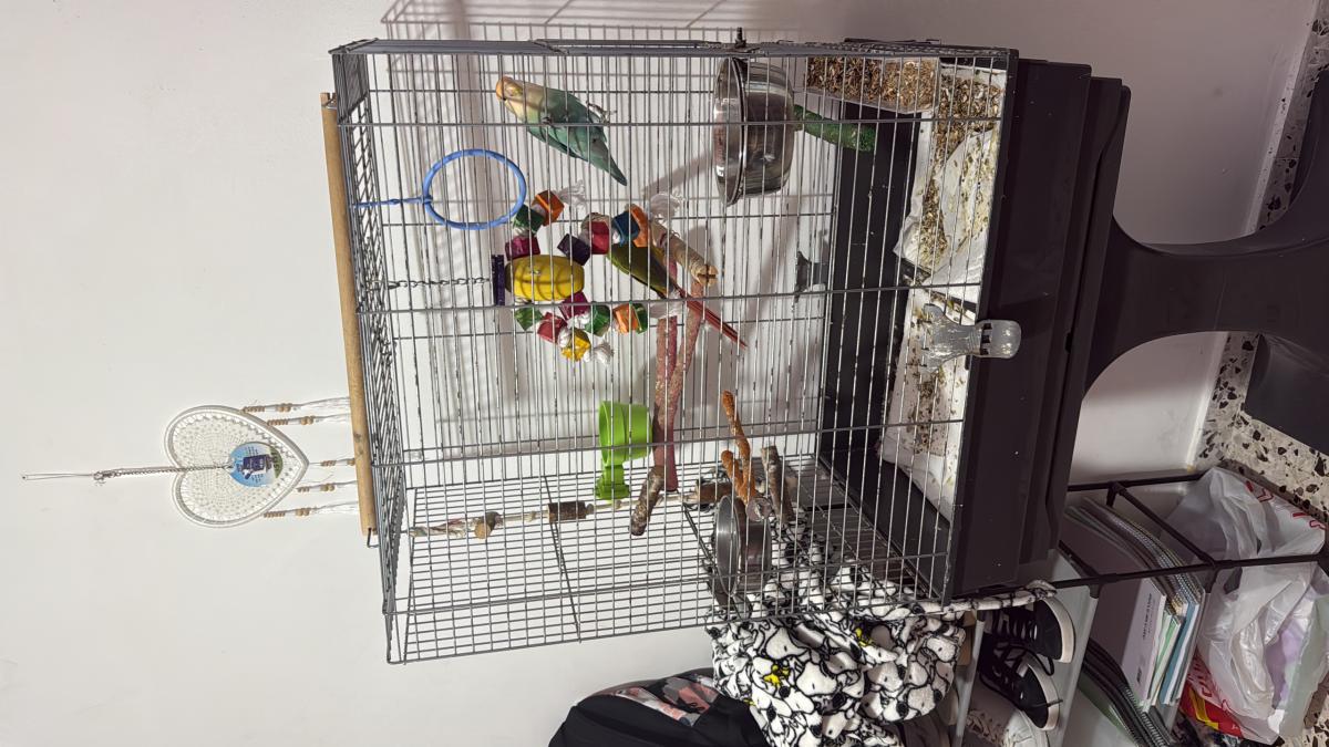 למכירה תוכי אהבה וגרינציק כולל כלוב