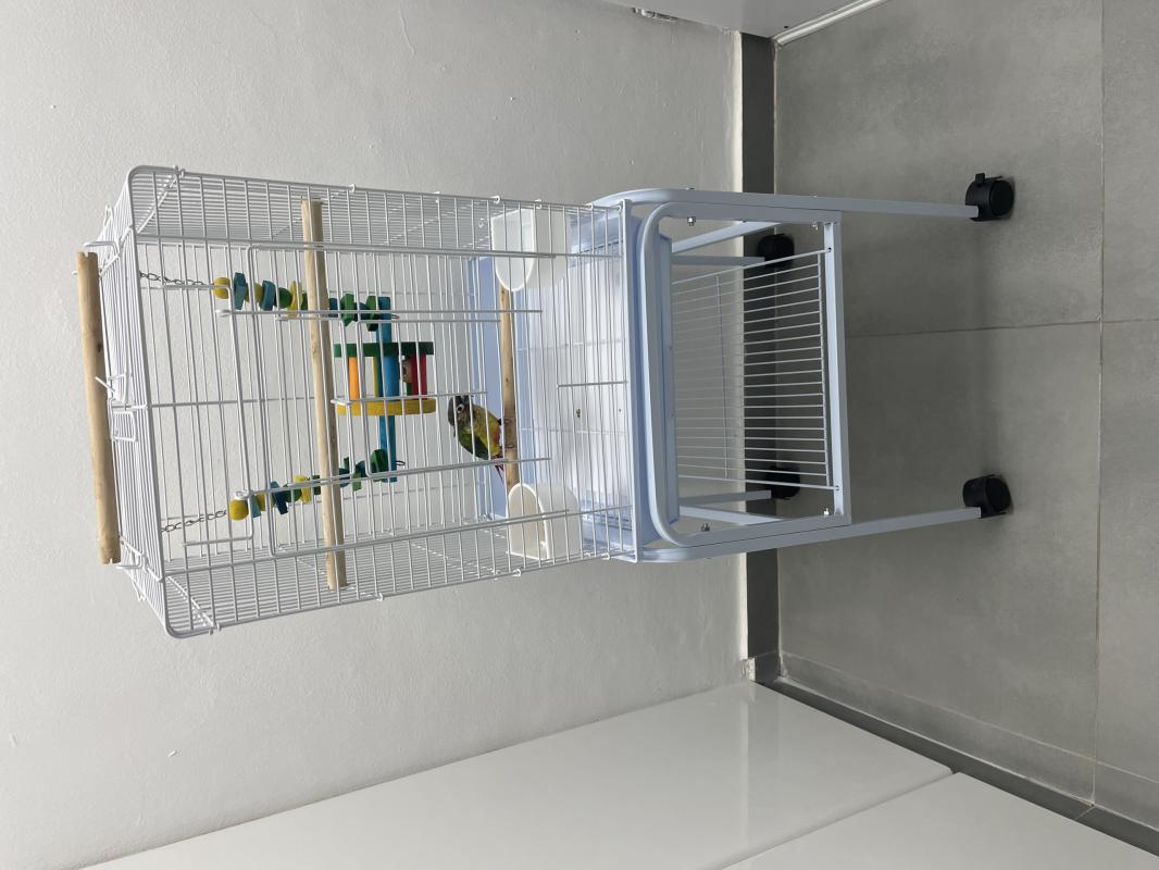 קוניור גרין צ’יק צעיר האכלת יד מוטבע ותאריך בן חודשיים וחצי אחרי גמילה כולל הכלוב חדש שמגיע איתו והאוכל שלו מתאים לילדים