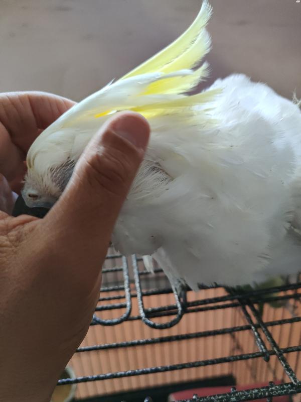 קקדו טריטון הציצית הצהובה הסוג הגדול עדיין בהאכלה בדוק מין ומחלות