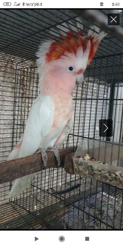 קקדו מיג'ור מיטשל האכלת יד זכר בן חמישה חודשים עם בדיקת מין ומחלות יפיפה נמכר עם כלוב גדול לרציניים בלבד