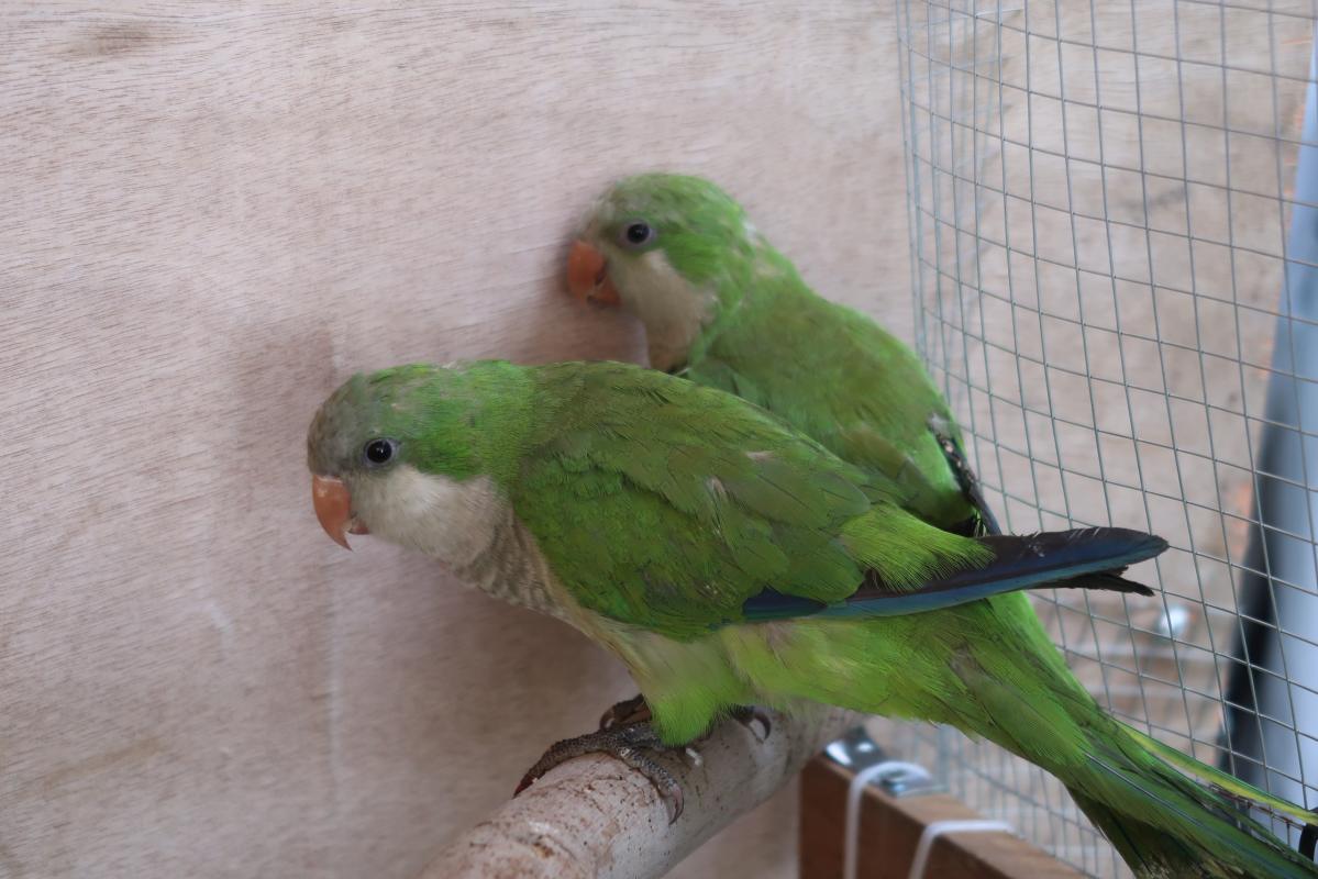 שני תוכים קוואקר חמודים בני שנהגמולים להאכלת יד