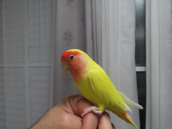 תוכי אהבה צהוב ראש צהוב אדום ידידותי