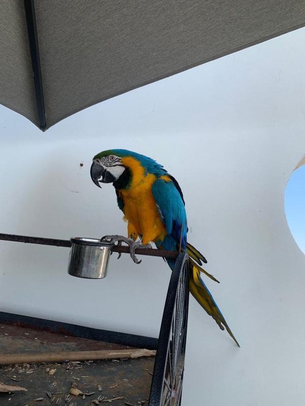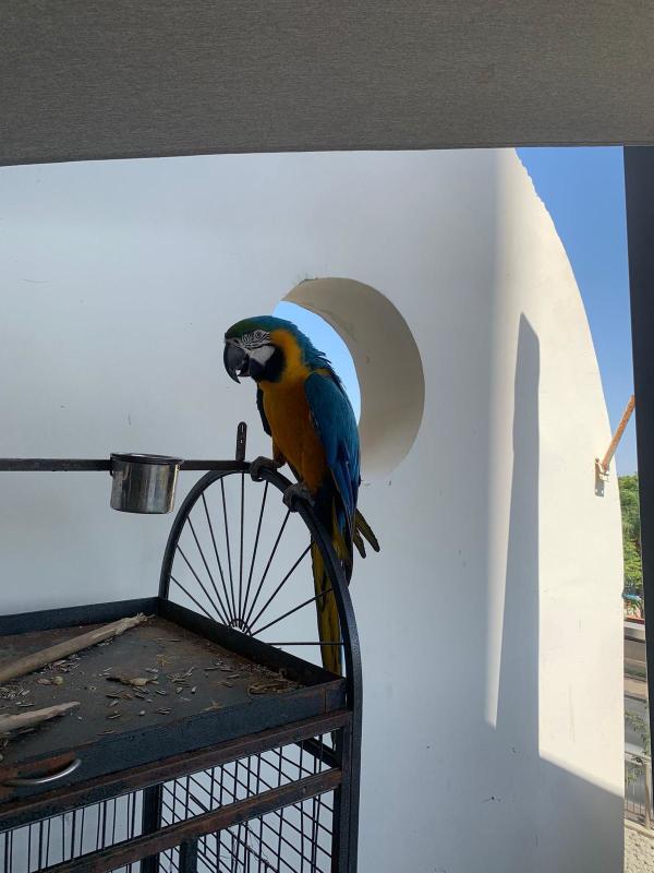 תוכי יפה ומטופל מדבר צוחק ורוקד