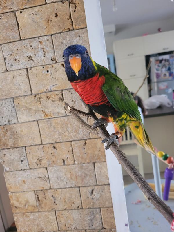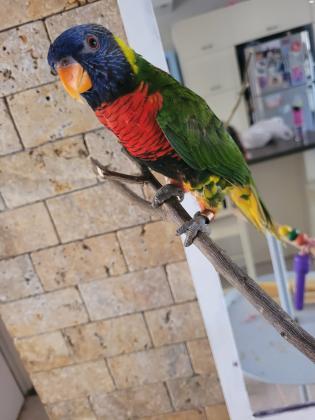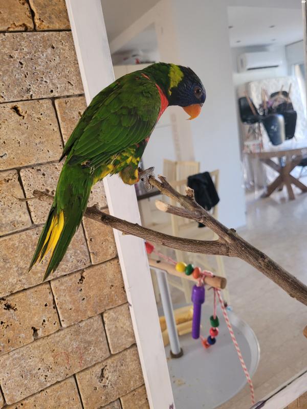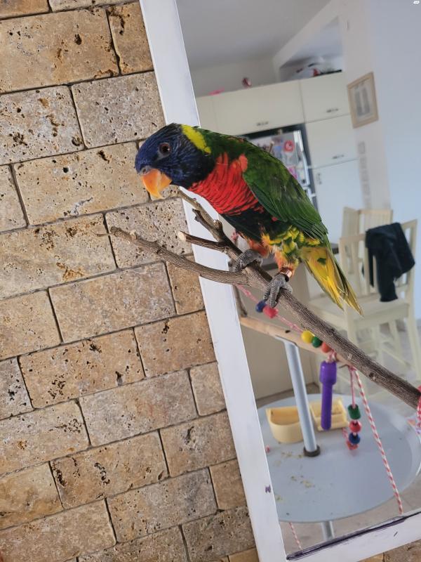 תוכי לורי עם כלוב וסטנד למשחק מסוג קשת בן חצי שנה מוטבע, האכלת יד, אומר בוקר טוביפייפה ומתוק, חברותי ואוהב תוכי מאד קרוב לליבנו לכן ימכר לבית טוב שיש להם זמן לטפל בו מעט גמישיםנמכר בצער רב עקב חוסר זמן לטיפול