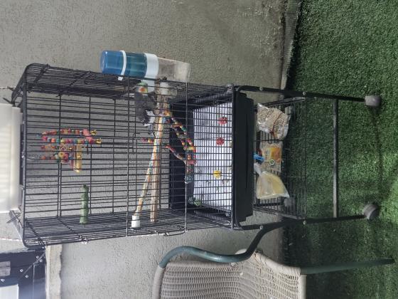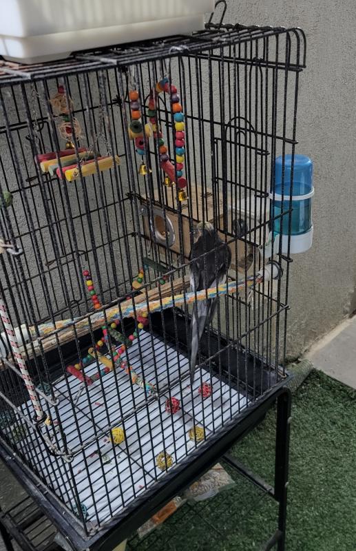 תוכי קוקטייל עם כלוב גדול מאובזר