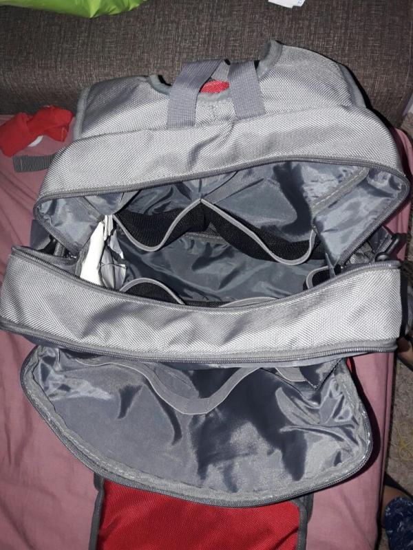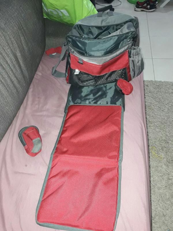 תיק החתלה של שילב במצב מצויין, כמו חדש) בצבעים אפור ואדום. עם משטח החתלה, מקום למגבונים. מקום לבקבוק עם שמירה על חום