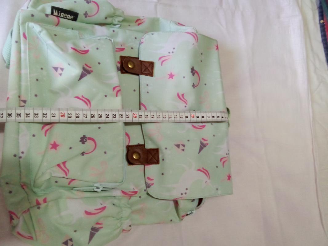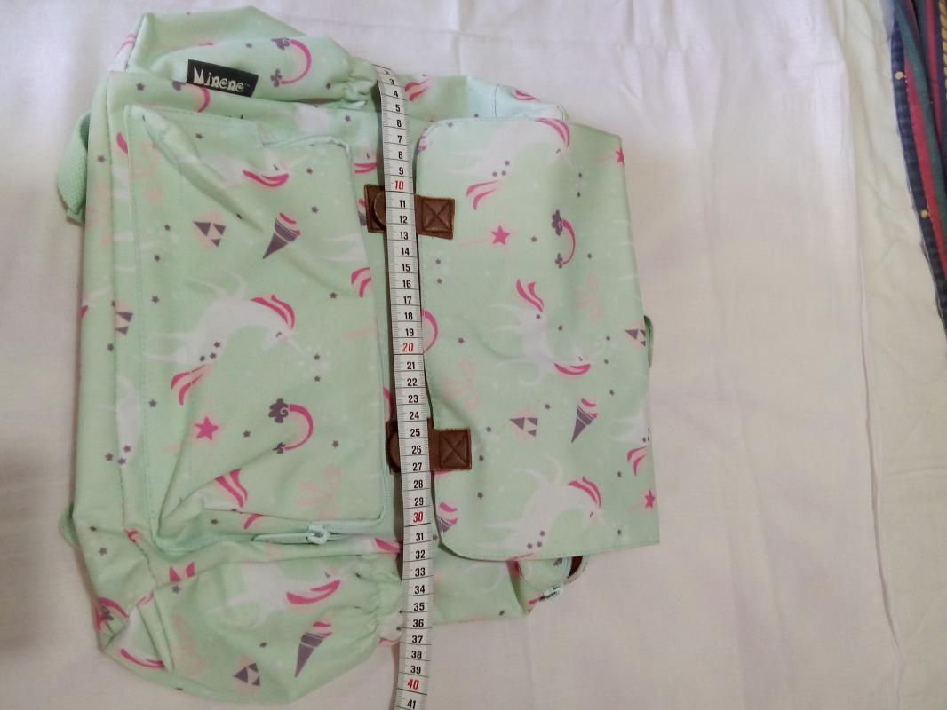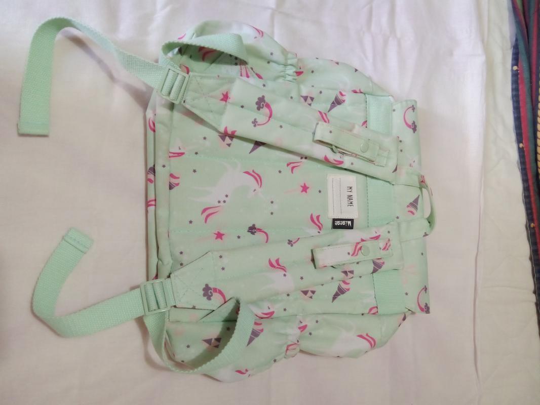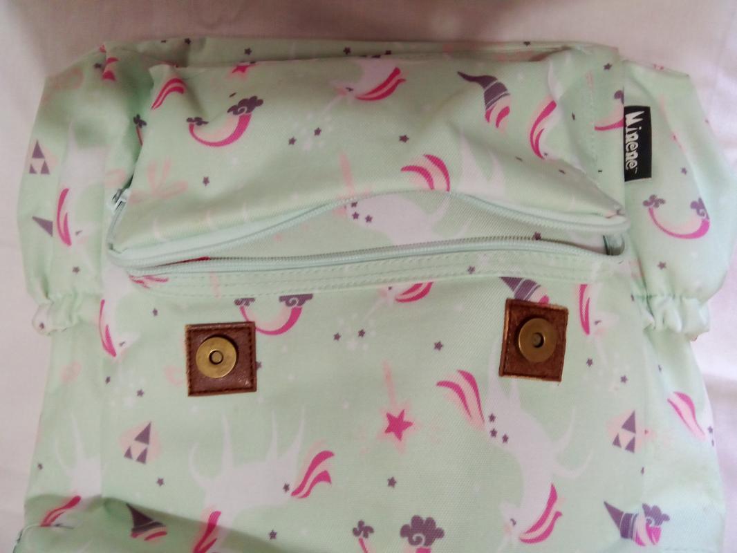 תיק לילדים בעיצוב רטרו מיננה Minene ירוק בהיר עם הדפס חד-קרן. חדש. לא היה בשימוש.מכיל: תא מרכזי גדול עם רוכסן, תא קדמי נפחי עם רוכסן, שני תאי צד תרמיים לבקבוקים, קלאפה עם סגירה מגנטית, ידית לתלייה, כתפיות מרופדות מתכווננות, רצועות חיבור ייחודיות לתלייה ותג שם לכתיבת שם הילד על גבי התיק. עשוי100% פוליאסטר.