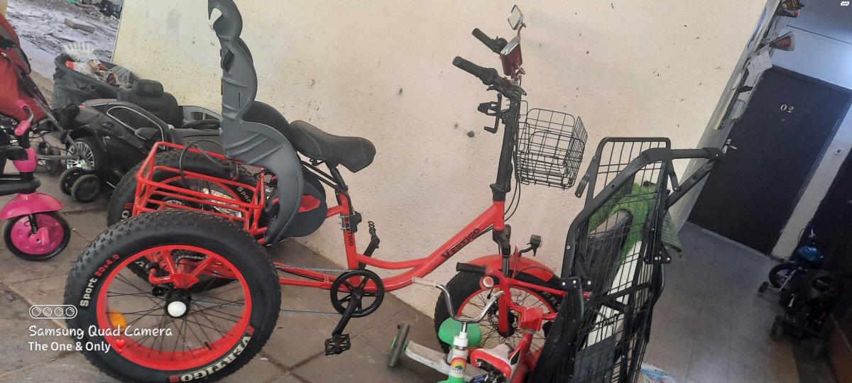תלת אופן למבוגרים 3 גלגלים חדש עם הילוכים ובלם דיסק קדמי ואחורי עם ארגז מובנה ( לא חשמלי- קיימת אפשרות להוספת סוללה )המחיר כולל כיסא לילד, סלסלה קדמית, מתקן לבקבוק, שרשראות ואזעקה כמובן כולל אחראיות שנה מהחנות נקנה לפני כשבועיים )26.6) ולצערי נאלצת למכור עקב מצב רפואי תלת אופן למבוגרים 3 גלגלים