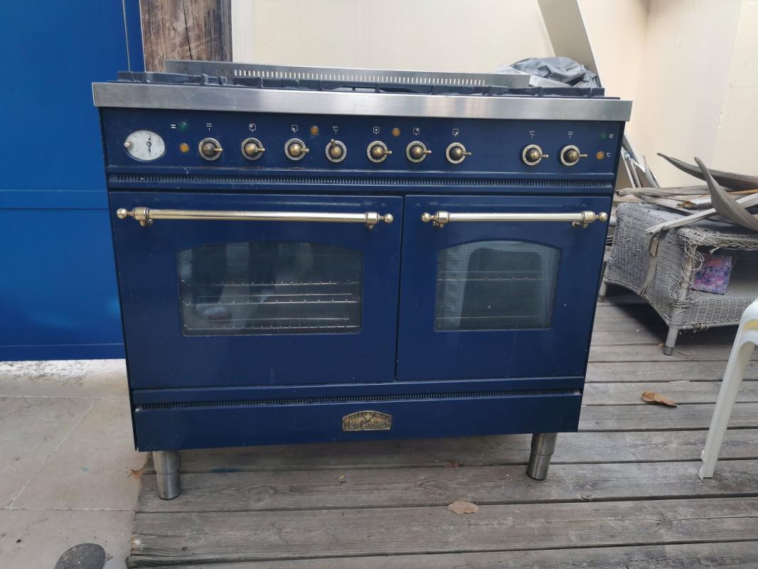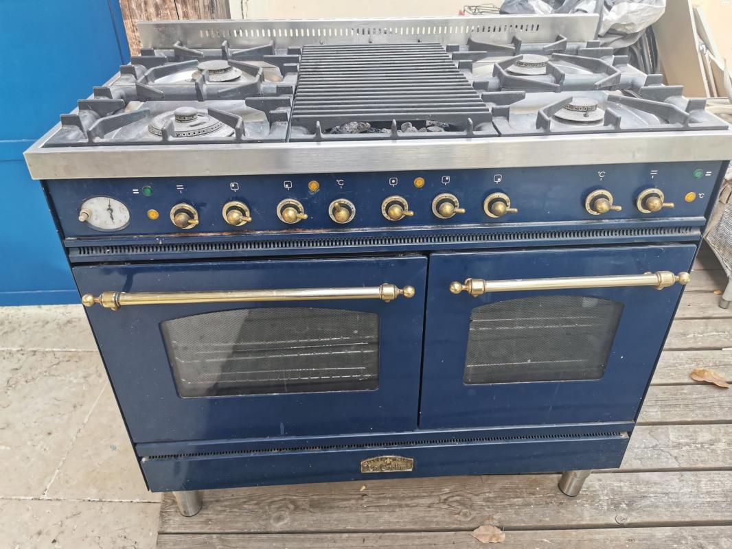 תנור אפייה "לה קוצ'ינה" כפול (שני תנורים צמודים) רוחב 1 מ', משולב עם כיריים (להבת טורבו) ומשטח ברביקיו מיוחד עם אבנים מתלהטות הניתנות לרחיצה במדיח. מעולה לקליית חצילים ואנטיפסטי בנוסף לבשרים וכו'...צבע כחול רויאל מקסים.מחיר תנור כזה חדש כעשרים אלף ש"ח.בן 8 עד 10 שנים במצב מצוין .מחיר מוצע - 4,500 ש"ח.למבינים ורציניים בלבד.דליה La Cucina