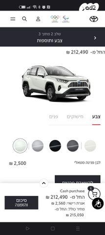 טויוטה RAV4 הייבריד E-xperience הייבריד 5 דל' אוט' 2.5 (178 כ''ס) בנזין 2023 למכירה בכפר סבא