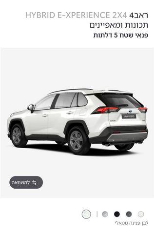 למכירה ראב 4 הייבריד דגם E-XPERIENCE בצבע לבן פנינה, חדשה מהחברה, להוציא רכב ישירות מהסוכנות, 0 ק"מ , יד 00, הרכב יגיע בחודש אוגוסט 2023, הקונה יהיה יד שניה (01).