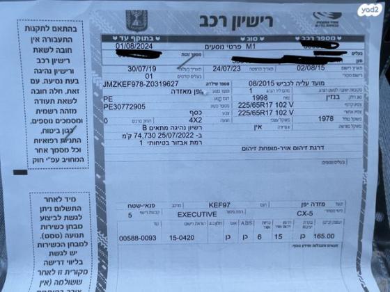 מאזדה CX-5 4X2 Executive אוט' 5 דל' 2.0 (165 כ"ס) בנזין 2015 למכירה בקרית אונו
