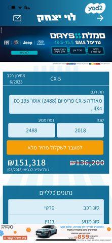 מאזדה CX-5 4X4 Premium אוט' 2.5 (195 כ"ס) בנזין 2018 למכירה בראשון לציון