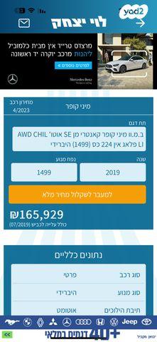מיני קאנטרימן 4X4 Chilli הייבריד אוט' 1.5 (136 כ''ס) היברידי חשמל / בנזין 2019 למכירה בתל אביב יפו