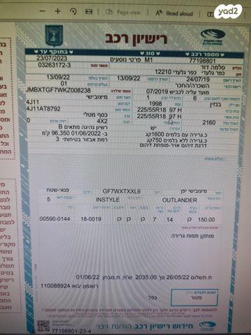 מיצובישי אאוטלנדר Instyle אוט' 7 מק' 2.0 (150 כ"ס) בנזין 2019 למכירה בקרית שמונה