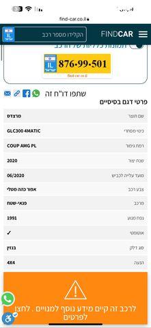 מרצדס GLC-Class קופה 4X4 GLC300 AMG Plu היבריד אוט' 2.0(211 כ''ס) ק1 היברידי חשמל / בנזין 2020 למכירה בגדרה