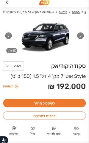 סקודה קודיאק Style FL אוט' 7 מק' 5 דל' 1.5 (150 כ''ס) בנזין 2021 למכירה בראשון לציון