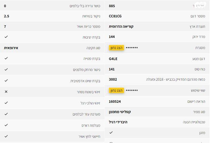 מצויד במערכות בטיחות רבות (ראו פירוט בצילום שצורף).r
