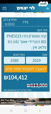 קיה נירו הייבריד PHEV EX אוט' 1.6 (105 כ''ס) היברידי חשמל / בנזין 2019 למכירה בבאר שבע