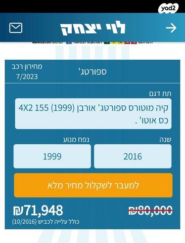 קיה ספורטז' Urban אוט' 2.0 (155 כ"ס) בנזין 2016 למכירה בראשון לציון