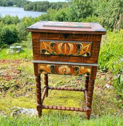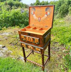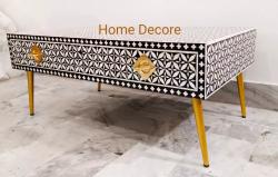 שולחן סלון קטן מעץ מלא עם ריקמה