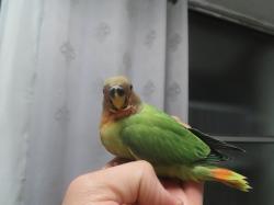 תוכי קווקאר האכלת יד סקרן וחכם לא נושך