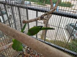 תוכי קווקאר האכלת יד סקרן וחכם לא נושך