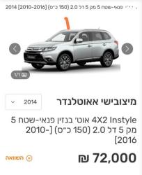 מיצובישי אאוטלנדר 4X4 Supreme אוט' 7 מק' 2.0 (150 כ"ס) בנזין 2014 למכירה באשקלון