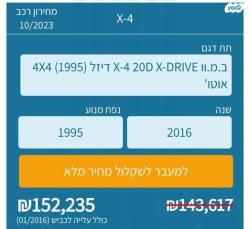 ב.מ.וו X4 4X4 XDRIVE20D Sport אוט' דיזל 2.0 (190 כ''ס) דיזל 2016 למכירה בבית שמש